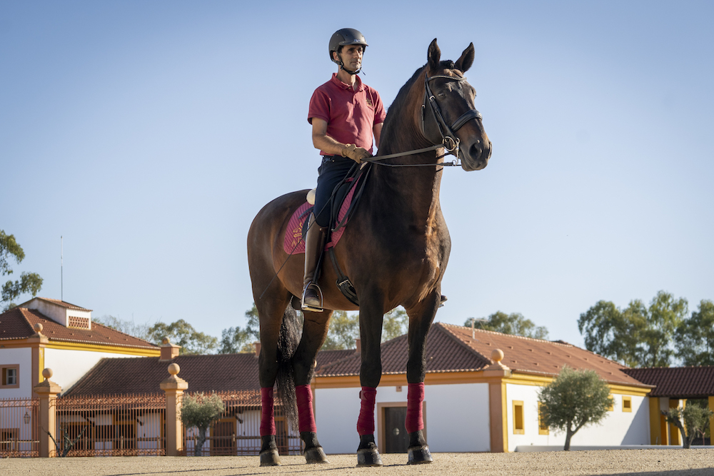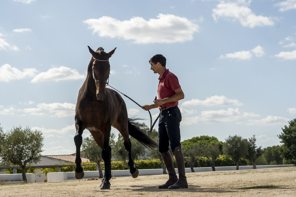 Most of Beirão daily care is done by Duarte from grooming, washing and training. Duarte was the one to originally to back him for riding. For such a big horse he is very elastic and light when he is moving.