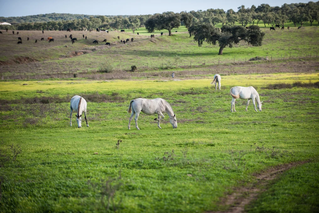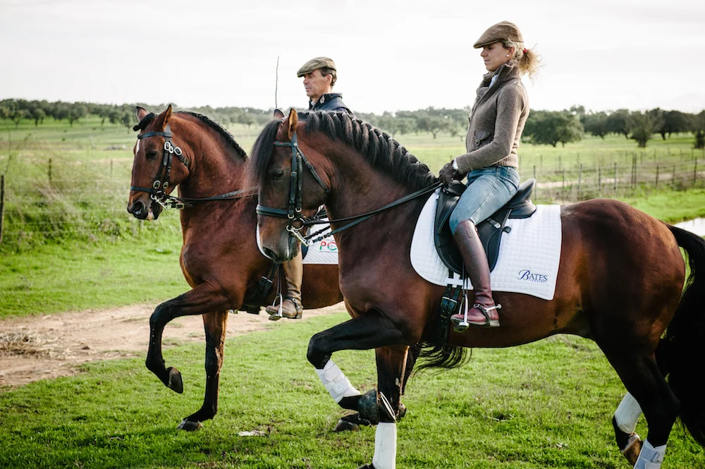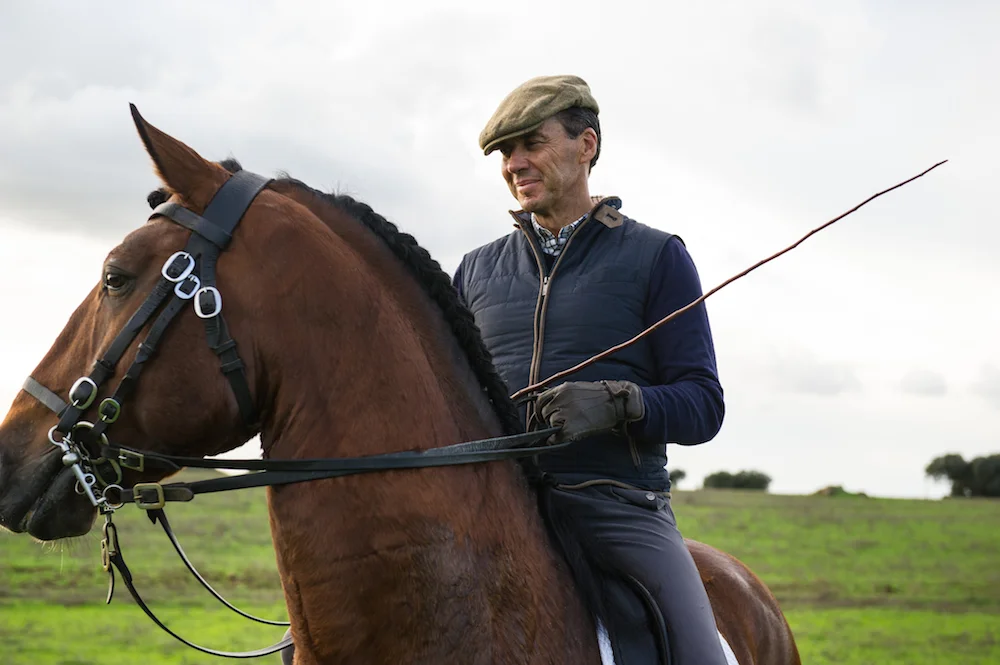 Their home is in the Alentejo, Portugal close to the Spanish border. A long drive takes you up to one of their stunning farms, where the Lusitano horses are bred and trained. The landscape is a timeless scene of rolling hills, lakes, clusters of trees, wild flowers and everywhere is teaming with bird life. Cattle and horses graze contentedly on the lush grass unusual for this time of year, but there has been more rain than normal. The drive winds it’s way to the farm, made up of a house, stables, indoor and outdoor arenas and a breeding facility situated in the middle of the expansive Alentejo views.