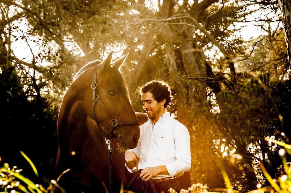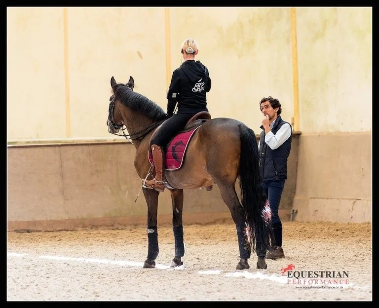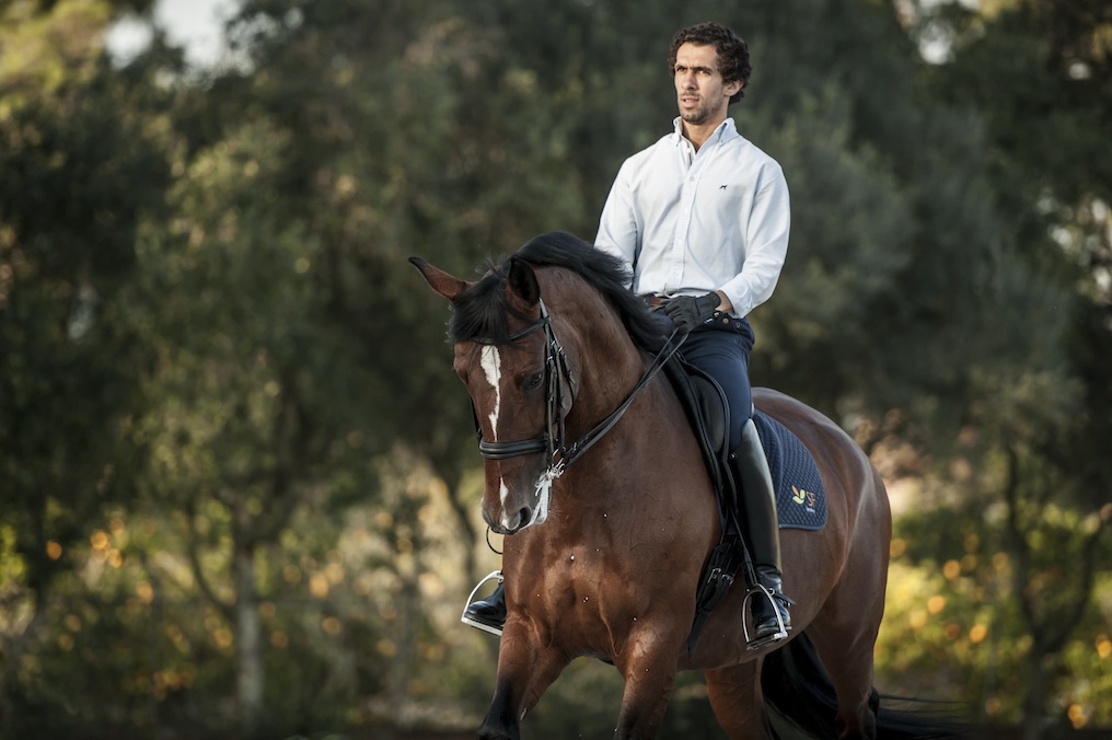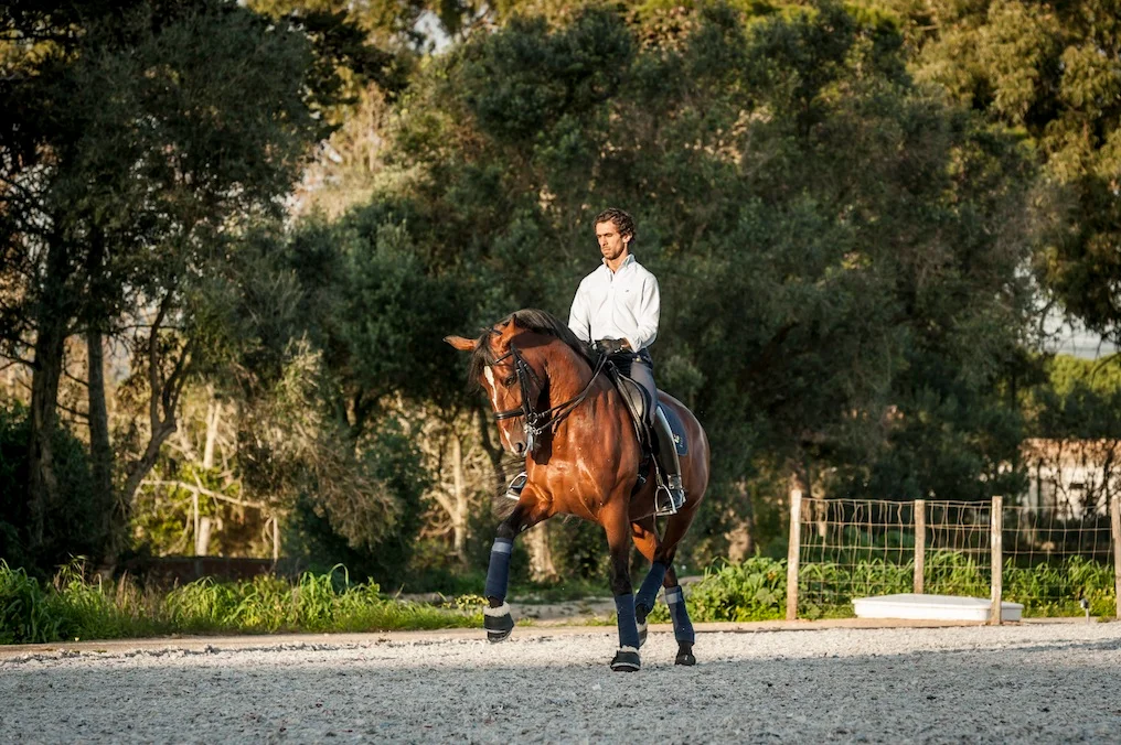 I have been training with Goncalo now for the past 4 years and both my riding and coaching have undergone serious adjustments and massive improvements. Feeling a desperate need for more, I was lucky enough to travel to Portugal to train and shadow Goncalo for 5 weeks, thanks to my sponsors Equestrian Performance and WB Recovery Ltd, and boy did I learn!Goncalo has given me the most precious ingredient needed to educate my horses and that’s to teach the horse to use his balance and intelligence to reach our competition goals and to use technique not power as my tools. Dressage with Goncalo is to developed a relationship with your horse where the horse willingly allows you to have control over every muscle in his body. It’s the most incredible feel when you can use the lightest of aids to ask a willing horse to perform a movement for you and he does it with effort and pleasure. I’m not hiding the fact that it was seriously hard work and a huge emphasis on self discipline, however you cannot swim for new horizons until you have courage to lose sight of the shore. Goncalo really is a master and although my journey has only just begun at last I feel I have found the trainer to both admire and learn from.from Tori Peters image by Julie Nicleson