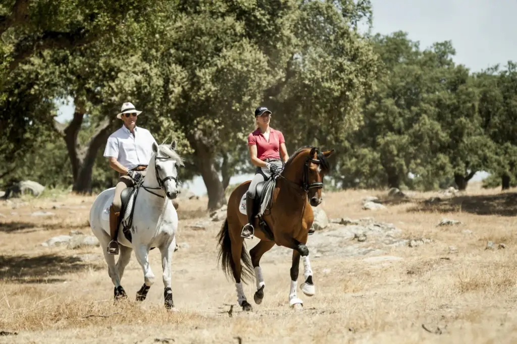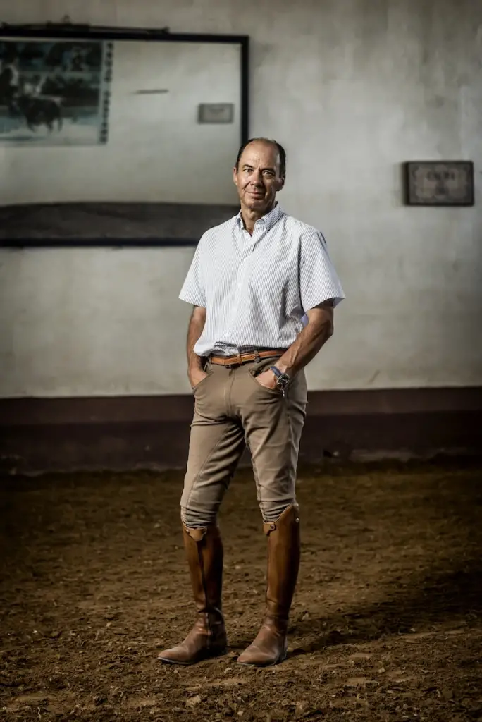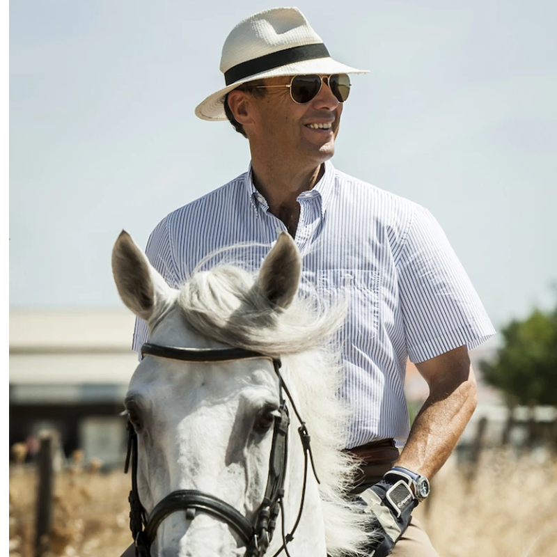 Stylish, dynamic, a warm smile, an engaging manner and totally at ease with himself – perfectly describes Portuguese born Paulo Caetano. A remarkable horseman who lives on one of his stunning farms in the Alentejo region of Portugal. He breeds and trains Lusitano horses, rears cattle and teaches dressage riders.