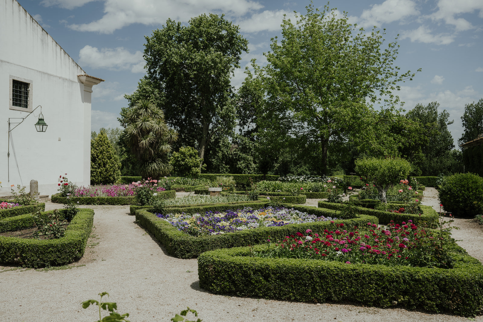 AA colourful box hedge garden forms a link between the picadeiro and stables. In the background are the meadows with huge ancient trees and a river. Here the protected storks have their nests. I could see baby birds peeking out waiting for their parents to return with food. The wing span of these majestic birds is impressive. I watched them gliding gracefully over the grazing horses to land effortlessly alongside them. This is the beginning of the Paúl do Boquilobo Biosphere Reserve.
