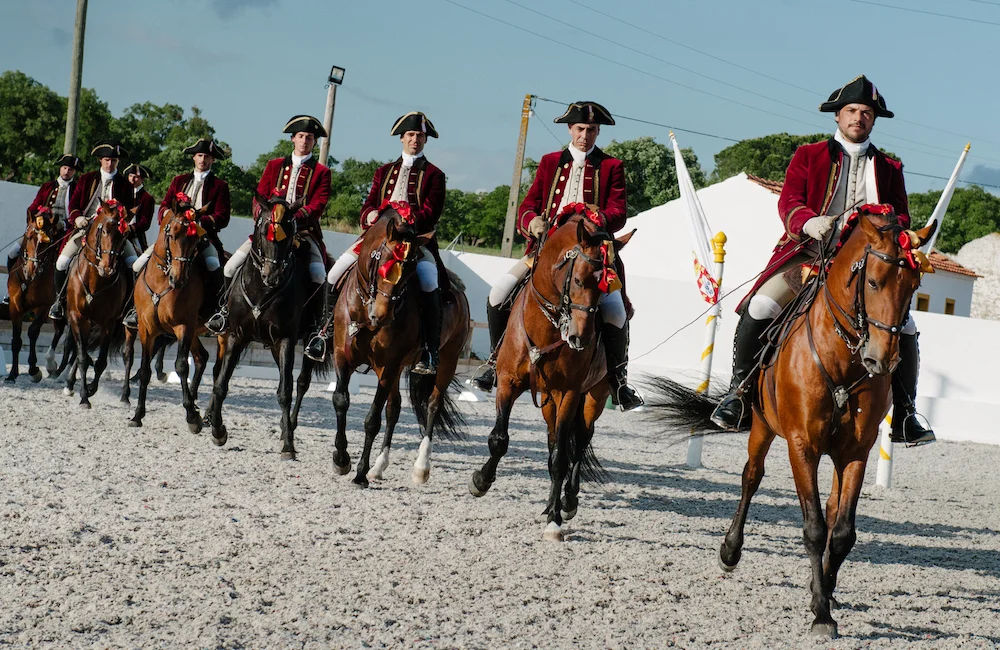 Known in Portuguese as Escola Portuguesa de Arte Equestre, it traces back to the Royal Court Academy founded in 1726 and was reestablished in 1979 at the Queluz National Palace. Now under Parques de Sintra. It features crimson coats, white breeches, tricorn hats — and a standard of grace that commands silence. The riders of the Portuguese School of Equestrian Art preserve not just a discipline, but a rich tradition.Their movements echo the pages of Marialva’s writings. Their horses, noble and collected, are bred at the Alter Real National Stud. Their bridles, bits, and saddles are handcrafted by masters such as Victorino Saddlery — every detail a salute to tradition.